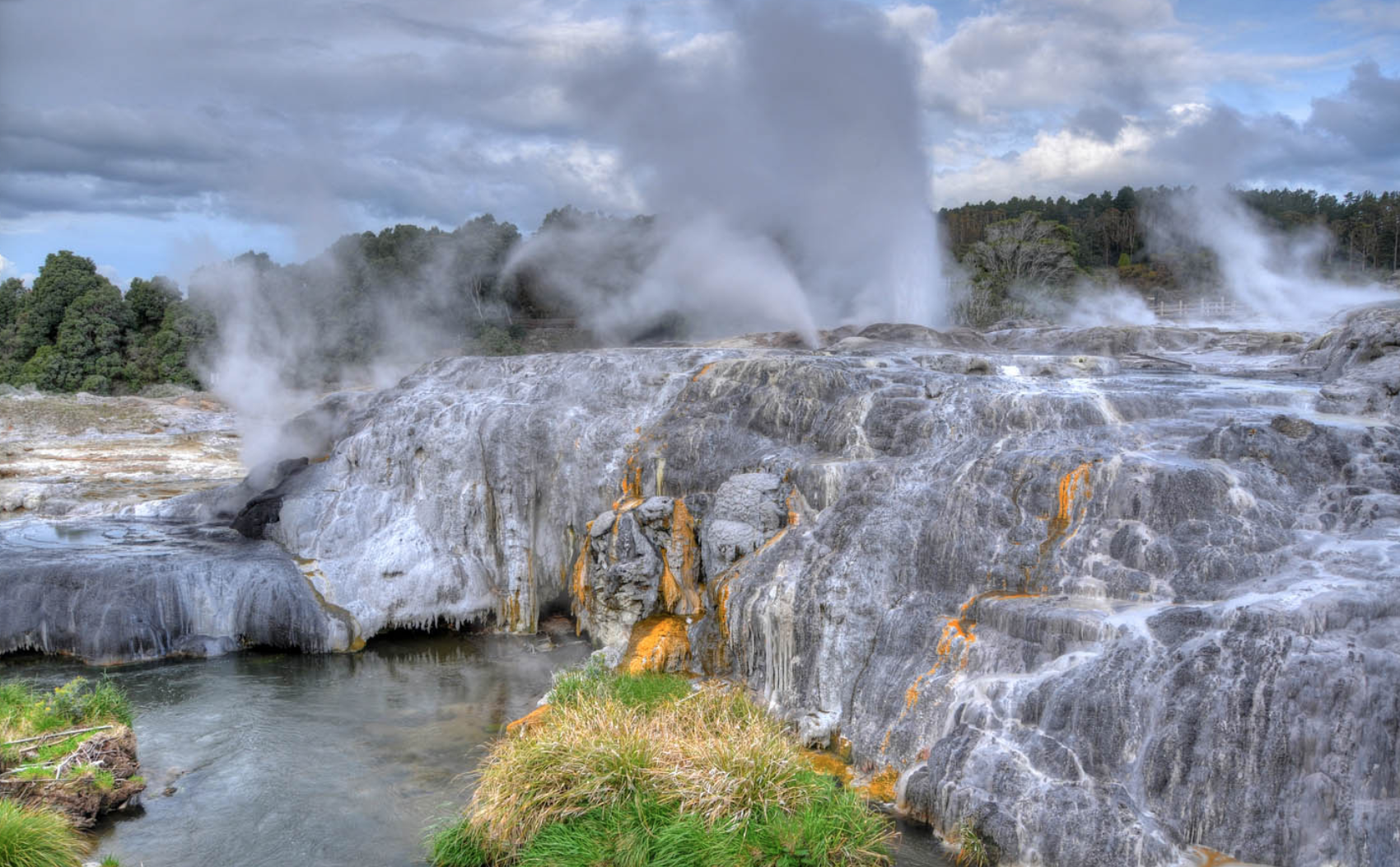 Rotorua ligt aan de Pacific Rim of Fire, en heeft één van 's werelds meest levendige gebieden van geothermische activiteit. Vanuit het Tongariro National Park rijden wij op 28 maart naar Roturua. Eerst komen we dan nog langs Lake Taupo, dat is gevormd door één van de grootste vulkanische explosies ooit. De eerste was zo’n 26.500 jaar geleden, waarna door de klap het hele Noordereiland onder een 100 meter dikke laag as kwam te liggen. Alle vegetatie verdween. De tweede was 1800 jaar geleden, waarbij het as tot 55 kilometer in de atmosfeer werd geworpen. Vanaf Taupo rijden we dan door een gebied met geysers; waar men zegt dat het enorm stinkt... Als tip wordt geadviseerd om nog te stoppen bij de "Huka Falls".
